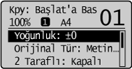 Kopyalama modu ekranı görüntülenirken, [