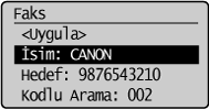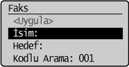] veya [ ] tuşuna basarak <İsim> öğesini vurgulayın ve sonra [OK] (Tamam) tuşuna basın.![]() |