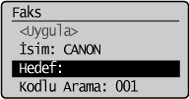 ] veya [ ] tuşuna basarak <Hedef> öğesini vurgulayın ve sonra [OK] (Tamam) tuşuna basın.![]() |