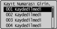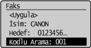 ] veya [ ] tuşuna basarak <Kodlu Arama> öğesini vurgulayın ve sonra [OK] (Tamam) tuşuna basın.![]() |