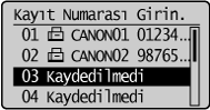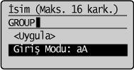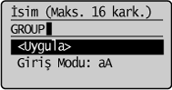 ] veya [ ] tuşuna basarak <İsim> öğesini vurgulayın ve sonra [OK] (Tamam) tuşuna basın.![]() |