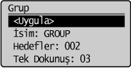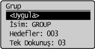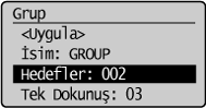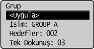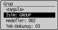 ] veya [ ] tuşuna basarak <Grup> öğesini vurgulayın ve sonra [OK] (Tamam) tuşuna basın.![]() |