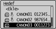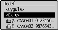 ] veya [ ] tuşuna basarak eklemek istediğiniz hedefi vurgulayın ve sonra [OK] (Tamam) tuşuna basın.![]() |