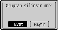] veya [ ] tuşuna basarak <Gruptan Sil> öğesini vurgulayın ve sonra [OK] (Tamam) tuşuna basın.![]() |