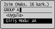 ] veya [ ] tuşuna basarak düzenlenecek grubu vurgulayın ve sonra [OK] (Tamam) tuşuna basın.![]() |