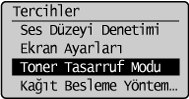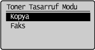 ] tuşuna basarak <Toner Tasarruf Modu> öğesini vurgulayın ve sonra [OK] (Tamam) tuşuna basın.