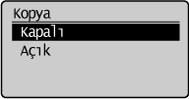 ] tuşuna basarak <Kapalı> veya <Açık> öğesini vurgulayın ve sonra [OK] (Tamam) tuşuna basın.
