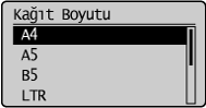 ] tuşuna basarak bir kağıt boyutunu vurgulayın ve [OK] (Tamam) tuşuna basın.
