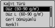 ] tuşuna basarak istediğiniz kağıt türünü vurgulayın ve [OK] (Tamam) tuşuna basın.