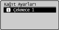 ] tuşuna basarak <Çekmece 1> öğesini vurgulayın ve sonra [OK] (Tamam) tuşuna basın.