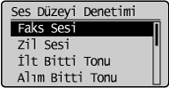 ] veya [ ] tuşuna basarak <Açık> (ses etkin) veya <Kapalı> (ses devre dışı) öğesini belirleyin ve sonra [OK] (Tamam) tuşuna basın. <Sadece Hata Oluştuğunda> seçeneği belirlendiyse, makine yalnızca bir hata oluşması durumunda ses çıkarır.