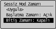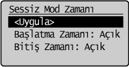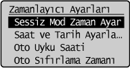 ] tuşuna basarak <Sessiz Mod Zaman Ayarları> öğesini vurgulayın ve sonra [OK] (Tamam) tuşuna basın.
