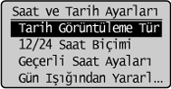 ] tuşuna basarak <Saat ve Tarih Ayarları> öğesini vurgulayın ve sonra [OK] (Tamam) tuşuna basın.