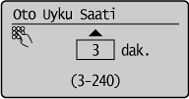 Otomatik uyku zamanı ayarları:Otomatik uyku zamanını bir dakika aralıklarla <3> ila <240> dakikaya ayarlayabilirsiniz. Varsayılan ayar <3> dakikadır.