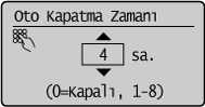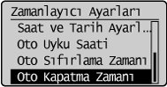 ] tuşuna basarak <Oto Kapatma Zamanı> öğesini vurgulayın ve sonra [OK] (Tamam) tuşuna basın.