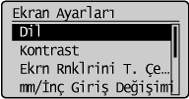 ] tuşuna basarak <Ekran Ayarları> öğesini vurgulayın ve sonra [OK] (Tamam) tuşuna basın.