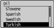 ] tuşuna basarak istediğiniz dili vurgulayın ve sonra [OK] (Tamam) tuşuna basın.