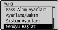 ] tuşuna basarak <Menüyü Başlat> öğesini vurgulayın ve sonra [OK] (Tamam) tuşuna basın.