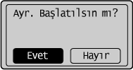 ] tuşuna basarak <Evet> öğesini vurgulayın ve [OK] (Tamam) tuşuna basın.