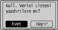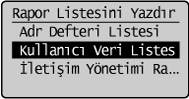 ] tuşuna basarak <Kullanıcı Verisi Listesi> öğesini vurgulayın ve sonra [OK] (Tamam) tuşuna basın.