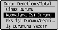 ] tuşuna basarak <Kopyalama İşi Durumu> öğesini vurgulayın ve sonra [OK] (Tamam) tuşuna basın.