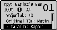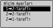 ] veya [ ] tuşuna basarak <1->2-Taraflı> öğesini vurgulayın ve sonra [OK] (Tamam) tuşuna basın.![]() |