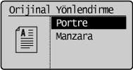 ] veya [ ] tuşuna basarak orijinal belgenin yönünü vurgulayın ve ardından [OK] (Tamam) tuşuna basın.![]() |