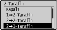 ] tuşuna basarak <2 Taraflı> öğesini vurgulayın ve sonra [OK] (Tamam) tuşuna basın.