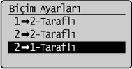 ] veya [ ] tuşuna basarak <2->1-Taraflı> öğesini vurgulayın ve sonra [OK] (Tamam) tuşuna basın. ![]() |