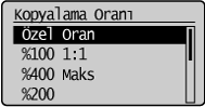 [  ] veya [  ] tuşuna basarak <Özel Oran> öğesini vurgulayın ve sonra [OK] (Tamam) tuşuna basın.