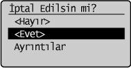 ] tuşuna basarak <İptal> seçeneğini vurgulayın ve [OK] (Tamam) tuşuna basın.
