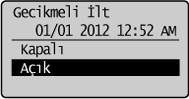 ] tuşuna basarak <Gecikmeli İlt> öğesini vurgulayın ve sonra [OK] (Tamam) tuşuna basın.