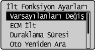 ] tuşuna basarak <İlt Fonksiyonu Ayarları> öğesini vurgulayın ve sonra [OK] (Tamam) tuşuna basın.