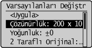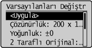 ] tuşuna basarak <Varsayılanları Değiştir> öğesini vurgulayın ve sonra [OK] (Tamam) tuşuna basın.