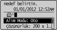 ] tuşuna basarak alma modunu vurgulayın ve sonra [OK] (Tamam) tuşuna basın.