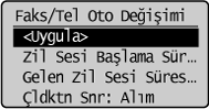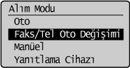 ] tuşuna basarak <Faks/Tel Oto Değişimi> öğesini vurgulayın ve sonra [OK] (Tamam) tuşuna basın.