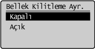 ] tuşuna basarak <Bellek Kilidi Ayarları> öğesini vurgulayın ve sonra [OK] (Tamam) tuşuna basın.