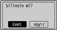 ] tuşuna basarak <Evet> öğesini vurgulayın ve [OK] (Tamam) tuşuna basın.![]() İş silinir.