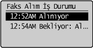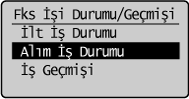 ] tuşuna basarak <Fks İşi Durumu/Geçmişi> öğesini vurgulayın ve sonra [OK] (Tamam) tuşuna basın.