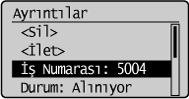 ] tuşuna basarak <Alım İş Durumu> öğesini vurgulayın ve sonra [OK] (Tamam) tuşuna basın.