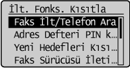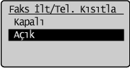 ] tuşuna basarak <Faks İlt/Telefon Aramasını Kısıtla> öğesini vurgulayın ve sonra [OK] (Tamam) tuşuna basın.