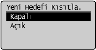 ] tuşuna basarak <Kapalı> veya <Açık> öğesini vurgulayın ve sonra [OK] (Tamam) tuşuna basın.