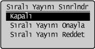 ] tuşuna basarak <Sıralı Yayını Engelleme> öğesini vurgulayın ve sonra [OK] (Tamam) tuşuna basın.