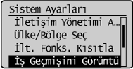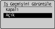 ] tuşuna basarak <İş Geçmişini Görüntüle> öğesini vurgulayın ve sonra [OK] (Tamam) tuşuna basın.
