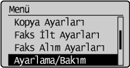 ] tuşuna basarak <Ayarlama/Bakım> öğesini vurgulayın ve ardından [OK] (Tamam) tuşuna basın.