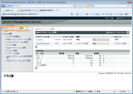 [MEAPアプリケーション管理]をクリックします。