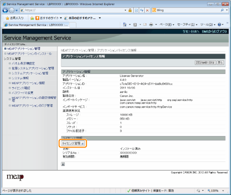 [ライセンス管理]をクリックします。