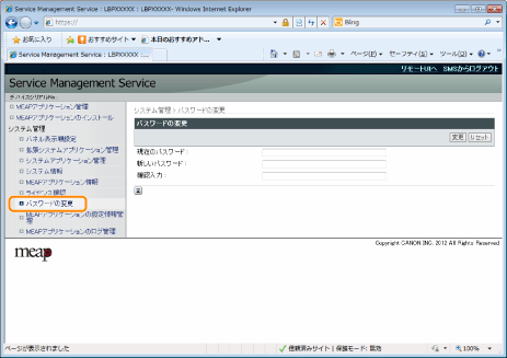 SMSのパスワードについて誤った使用を防ぐため、管理者の方はご使用を始めるときにパスワードを変更してください。