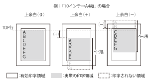 上余白を減らした場合、印字領域の上端を超えた部分のデータは印刷されません。このとき、下端はページ長までのデータを印刷します。