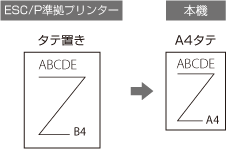 ESC/P準拠プリンターにB4サイズのカット紙をタテ置きにセットして使用していたときに選択します。A4サイズに縮小し用紙のほぼ中央(ワイド領域では印字領域ほぼいっぱい)に、ポートレイトで印刷します。